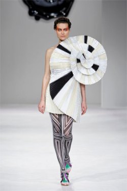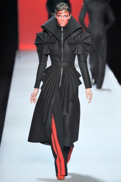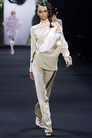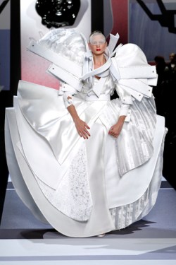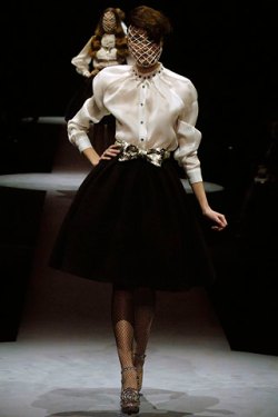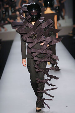 Since Spring is a few months away, I want to show what these two geniuses expect us to wear. Viktor & Rolf isn’t for those who like to spend their days in a pair of jeans and t-shirt. Their ready-to-wear hops on, off and past the line of avant garde. There is no doubt these clothes will attract major attention at work. My favorite attribute of Viktor & Rolf’s designs is how they play with simple details of basic things we all wear. Featured in this year’s Spring, huge shoe laces are weaved beautifully through different garments. Scroll down a bit to see what I’m talking about.