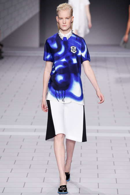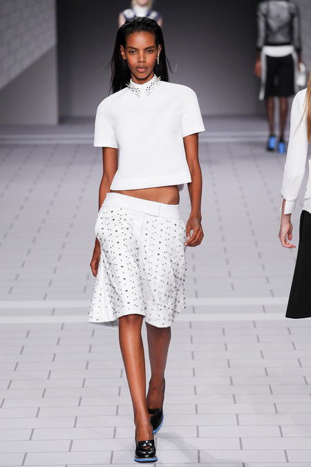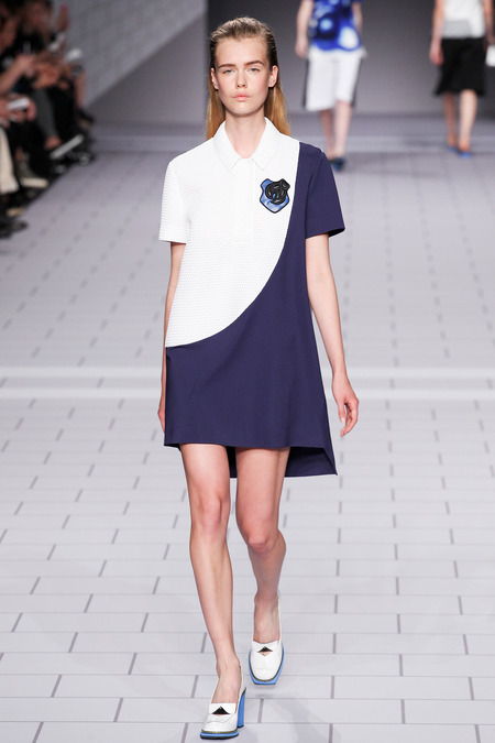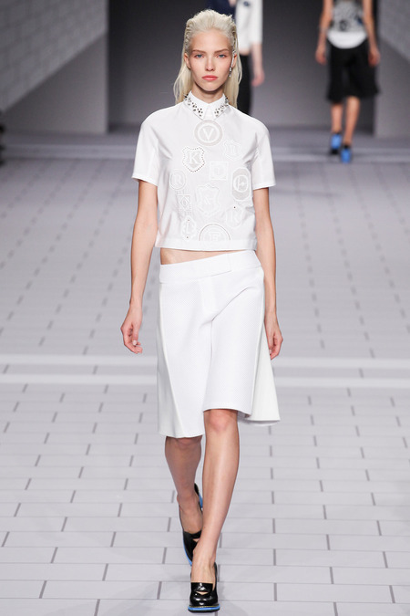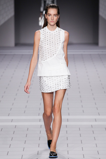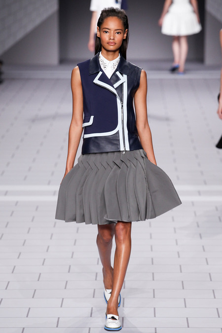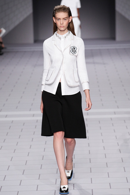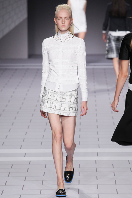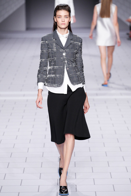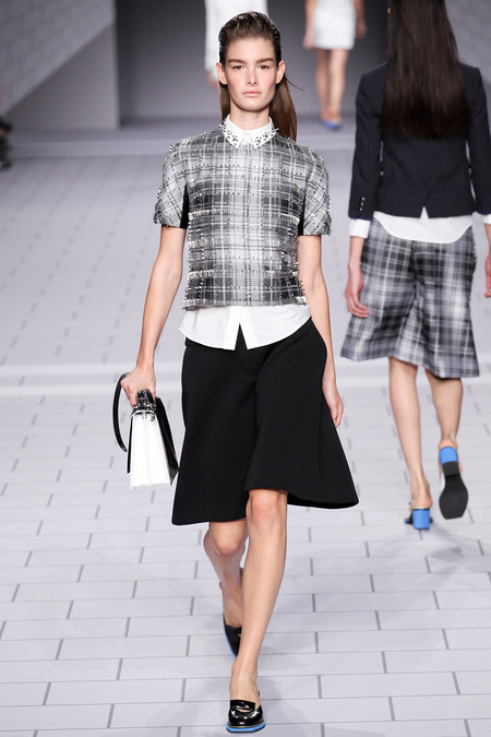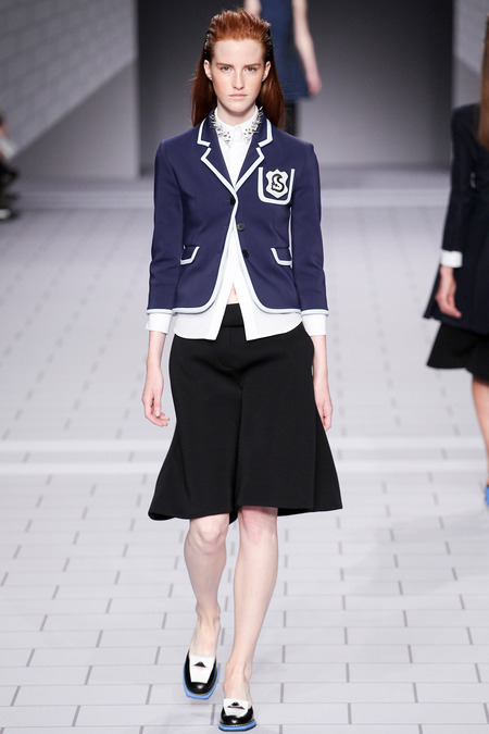 The past few seasons, the duo have enjoyed clashing clean and preppy with rebellion and sharp edges. They’ve done it! The clothes are fun, striking in their simplicity and adorned with classroom hardware. Their play on the school uniform is inventive and definitely attracts attention. The spikes and safety pins are elegantly used, most appearing to be metallic plaid. I love the different emblems and crests, reminiscent of a University secret society.