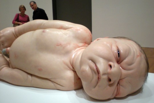 I’m not sure if it stems from my narcissism but I’ve always wanted a huge David like sculpture of myself. Luckily for me I know of the man who can not only do this but help me realize how I really look, which I’m not sure I could take. Today I present Ron Mueck. Hailing from Australia, Mueck is one of today’s great hyperrealist sculptors.