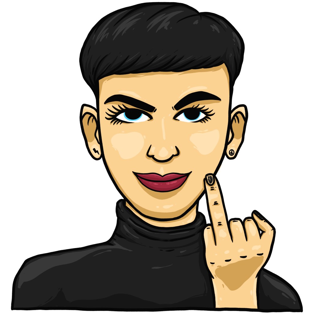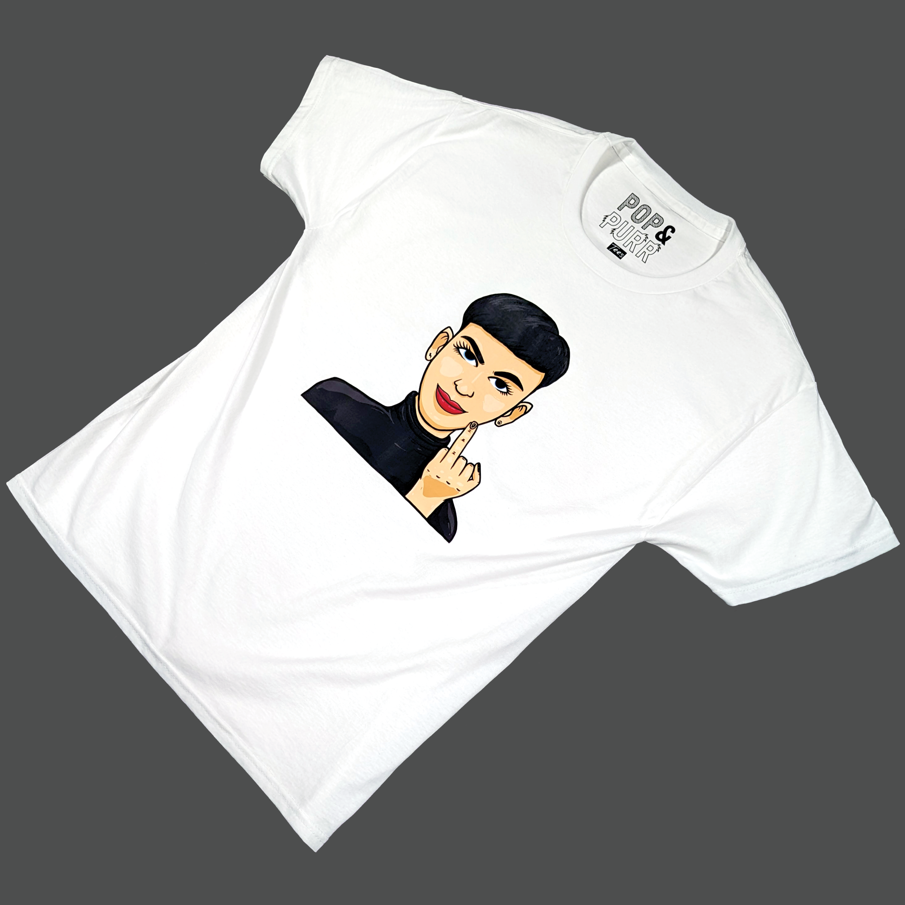 If you think the gorgeous being would ever dawn a furry costume beyond the bedroom to represent Pop & Purr, you’re totally losing your mind. Instead, ‘Em wears a smirk and gives us all the ring finger in a signature look, hopefully portraying the silly sarcasm I’m after with Pop & Purr. I intend to out ‘Em as a mysterious time traveler, so for sure stay tuned and gear up!