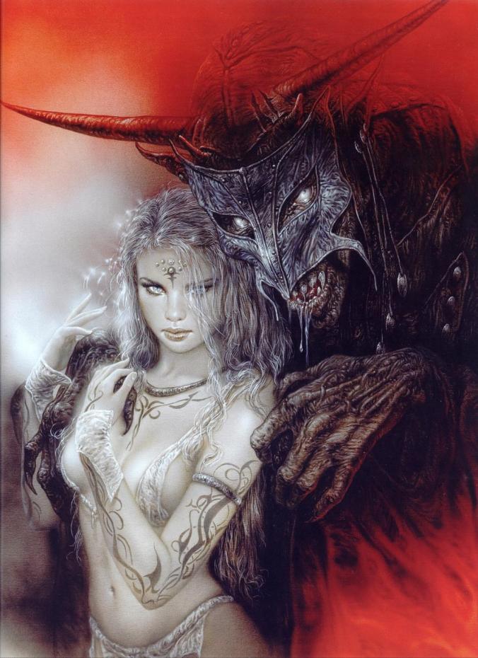 One of my greatest references of inspiration comes from a talented and creative artist I’ve been following since high school, impressed time after time when he creates something new. There are many depictions of beauty and the beast, romances, historic moments, westerns, Asian philosophies, the future, epic odysseys and plenty of women. I get lost in every image, pick up on every detail, which leaves me with the opportunity to create my own fantastic story. Of course, some of it can get quite dark and sexual, yet I can’t deny they are beautiful, tastefully and creatively done by the master, Luis Royo.